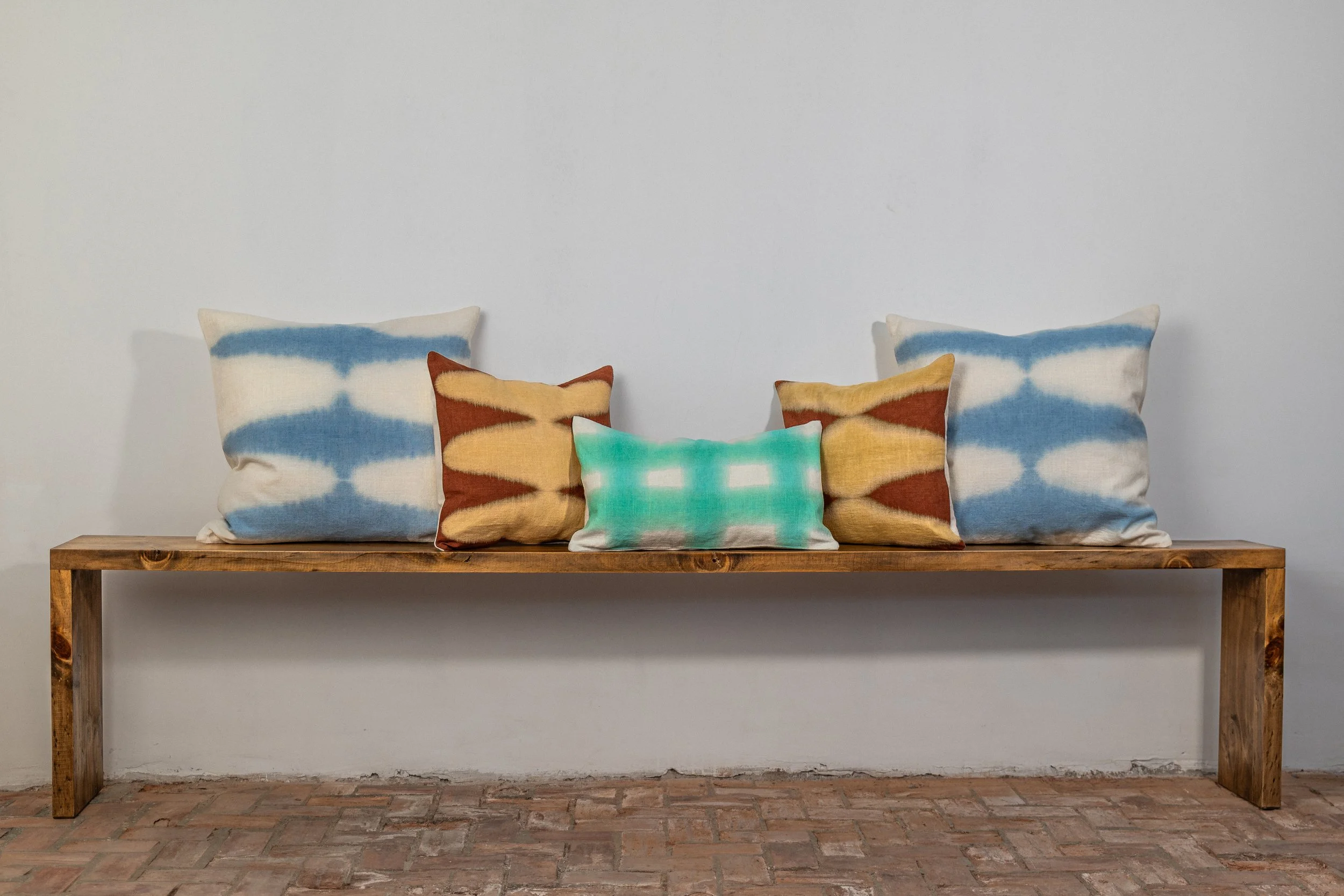 outer pillows soft diamonds - sky / inner pillows soft diamonds glow - rust / center pillow soft check - pale mint